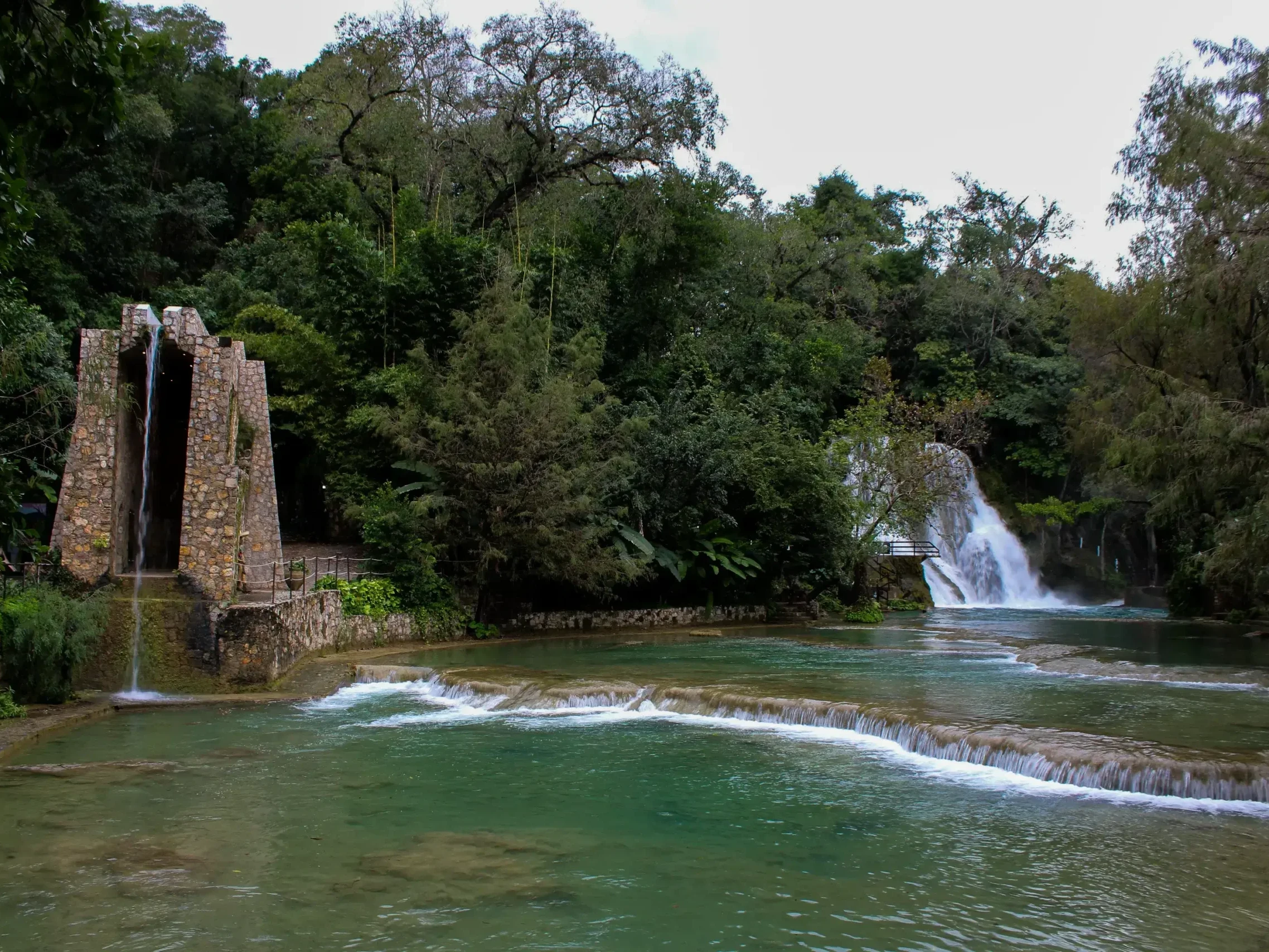 Tres cascadas principales y múltiples pozas de agua cristalina.